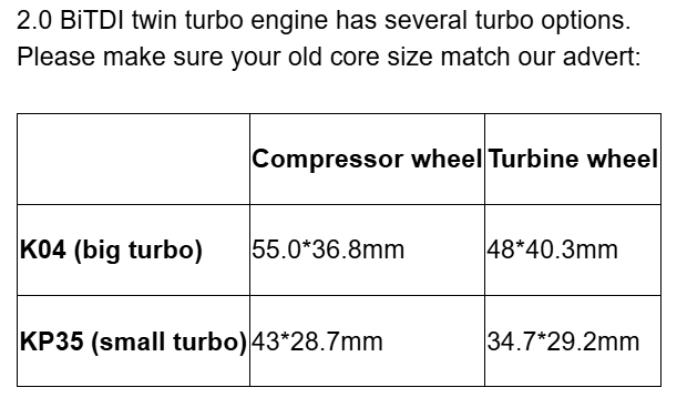 2 відгука про Картридж турбіни 54351014708 -18043, K04 KP35-120B-0100,10009880101,10009880051,10009880069, 10009880097,10009880114, 10009880115, 03L145701S, CHRA30222T
