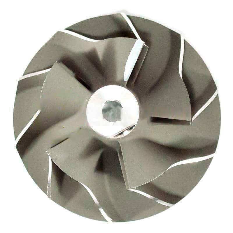 • Задний диск – это плоская круглая часть компонента, расположенная под лопастями. Он важен для стабильности колеса и обеспечивает поверхность для балансировочных проемов. Хорошо сбалансированное колесо компрессора имеет немаловажное значение для минимизации вибраций и обеспечения бесперебойной работы.