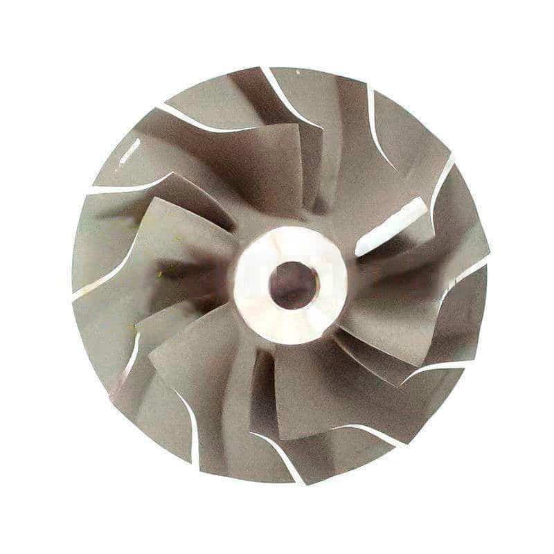 • Задний диск – это плоская круглая часть компонента, расположенная под лопастями. Он важен для стабильности колеса и обеспечивает поверхность для балансировочных проемов. Хорошо сбалансированное колесо компрессора имеет немаловажное значение для минимизации вибраций и обеспечения бесперебойной работы.